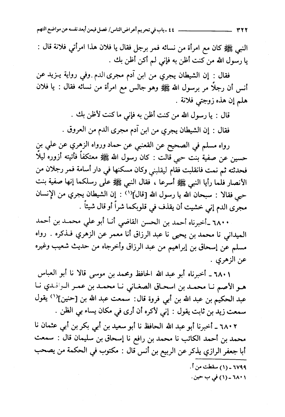 6801 - أخبرناه أبو عبد الله الحافظ و محمد بن موسى قالا نا أبو العباس هو الأصم نا محمد بن إسحاق الصغاني نا محمد بن عمر الواقدي نا عبد الحكيم بن عبد الله بن أبي فروة قال : سمعت عبد الله بن حنين يقول سمعت زيد بن ثابت يقول : إني لأكره أن أرى في مكان يساء بي الظن