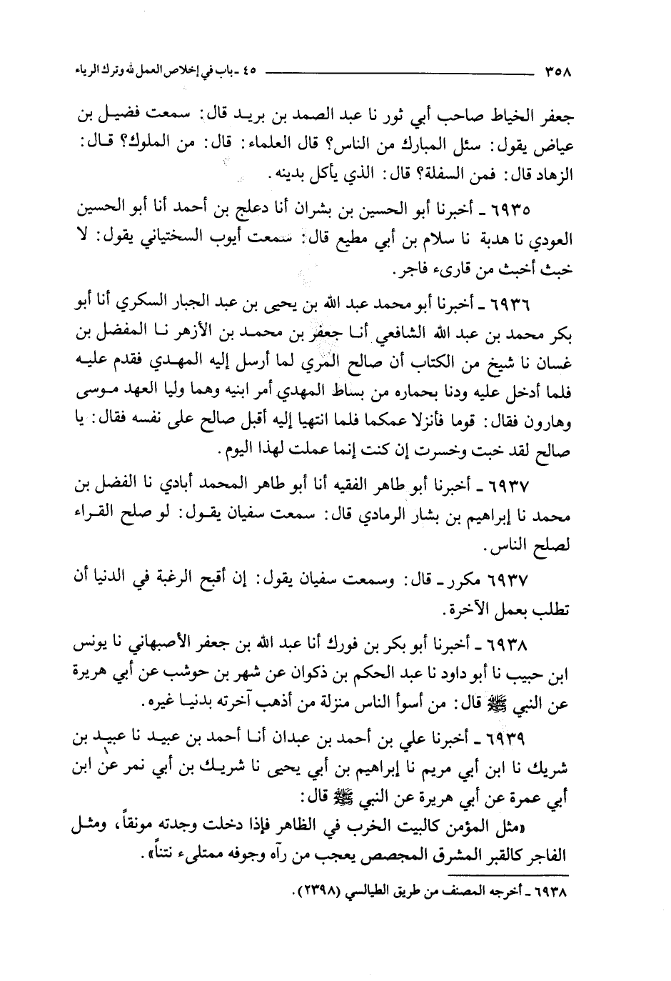 6935 - أخبرنا أبو الحسين بن بشران أنا دعلج بن أحمد أنا أبو الحسين العودي نا هدبة نا سلام بن أبي مطيع قال : سمعت أيوب السختياني يقول : لا خبث أخبث من قارئ فاجر