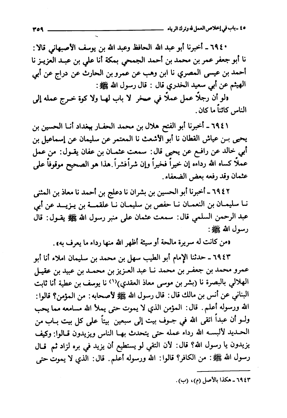 6941 - أخبرنا أبو الفتح هلال بن محمد الحفار ببغداد أنا الحسين بن يحيى بن عياش القطان نا أبو الأشعث نا المعتمر عن سليمان عن إسماعيل بن أبي خالد عن رافع عن يحيى قال : سمعت عثمان بن عفان يقول : من عمل عملا كساه الله رداءه إن خيرا فخيرا وإن شرا فشرا هذا هو الصحيح موقوفا على عثمان وقد رفعه بعض الضعفاء