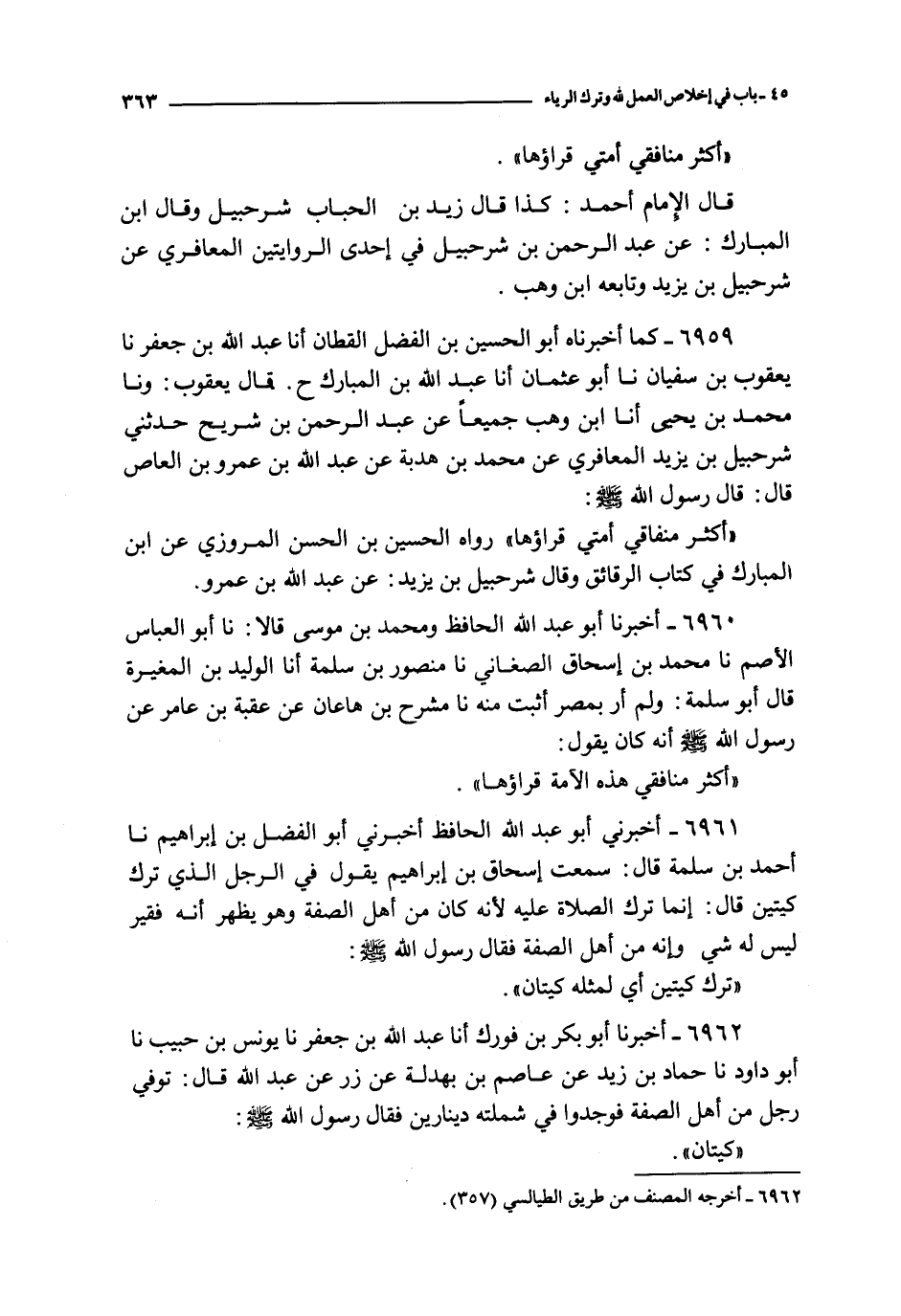 أكثر منافقي أمتي قراؤها رواه الحسين بن الحسن المروزي عن ابن المبارك في كتاب الرقائق وقال شرحبيل بن يزيد : عن عبد الله بن عمرو