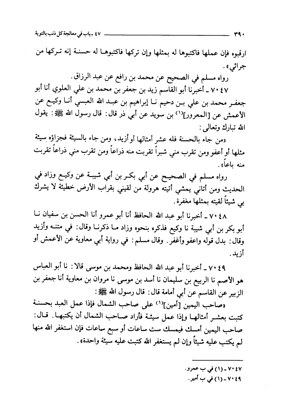 7048 - أخبرنا أبو عبد الله الحافظ أنا أبو عمرو أنا الحسن بن سفيان نا أبو بكر بن أبي شيبة نا وكيع : فذكره بنحوه وزاد ما ذكرنا وقال : في متنه وأزيد وقال : بدل قوله واعفو وأغفر وقال مسلم : في رواية أبي معاوية عن الأعمش أو أزيد