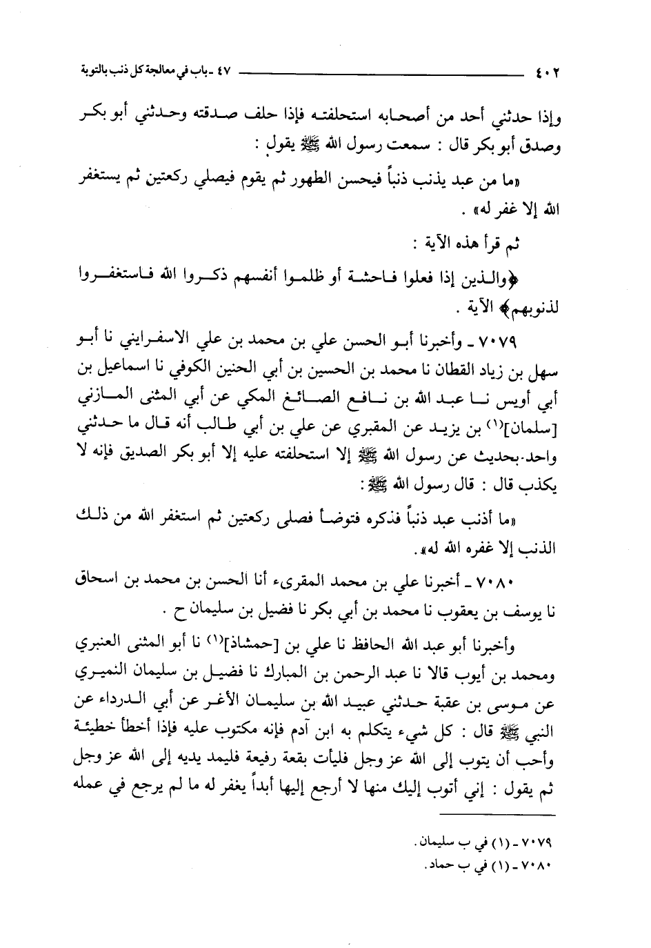 7080 - أخبرنا علي بن محمد المقرئ أنا الحسن بن محمد بن إسحاق نا يوسف بن يعقوب نا محمد بن أبي بكر نا فضيل بن سليمان ح