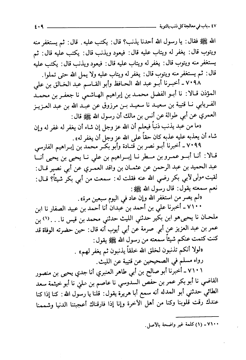 لولا أنكم تذنبون لخلق الله خلقا يذنبون ثم يغفر لهم