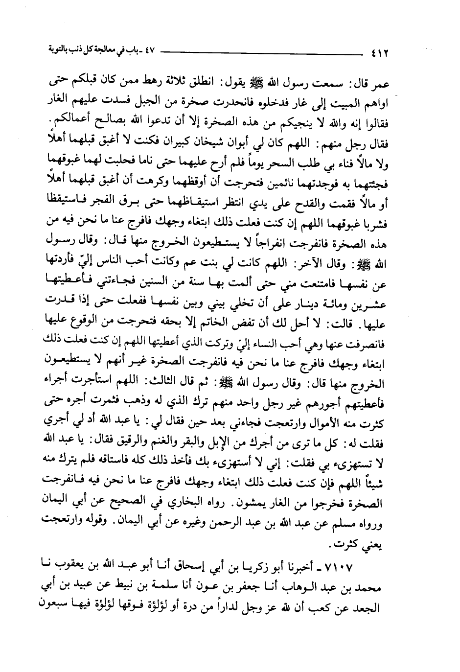7107 - أخبرنا أبو زكريا بن أبي إسحاق أنا عبد الله بن يعقوب نا محمد بن عبد الوهاب أنا جعفر بن عون أنا سلمة بن نبيط عن عبيد بن أبي الجعد عن كعب : أن الله عز و جل لدارا من درة أو لؤلؤة فوقها لؤلؤة فيها سبعون ألف قصر في كل قصر سبعون ألف دار في كل دار سبعون ألف بيت لا ينزلها إلا نبي أو صديق أو شهيد أو إمام عادل أو رجل محكم في نفسه قال سلمة : فقلت لعبيد : وما الرجل المحكم في نفسه ؟ قال : الرجل يطلب الحرام من المال والنساء فيعرض له إن شاء تقدم وإن شاء تأخر فيترك مخافة الله عز و جل فذلك الرجل المحكم نفسه