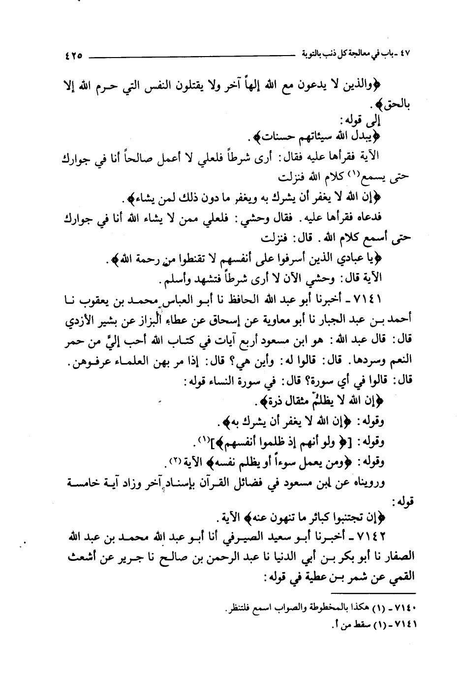 7141 - أخبرنا أبو عبد الله الحافظ نا أبو العباس محمد بن يعقوب نا أحمد بن عبد الجبار نا أبو معاوية عن إسحاق عن عطاء البزاز عن بشير الأزدي قال : قال عبد الله : هو ابن مسعود أربع آيات في كتاب الله أحب إلي من حمر النعم وسردها قال : قالوا له : وأين هي ؟ قال : إذا مر بهن العلماء عرفوهن