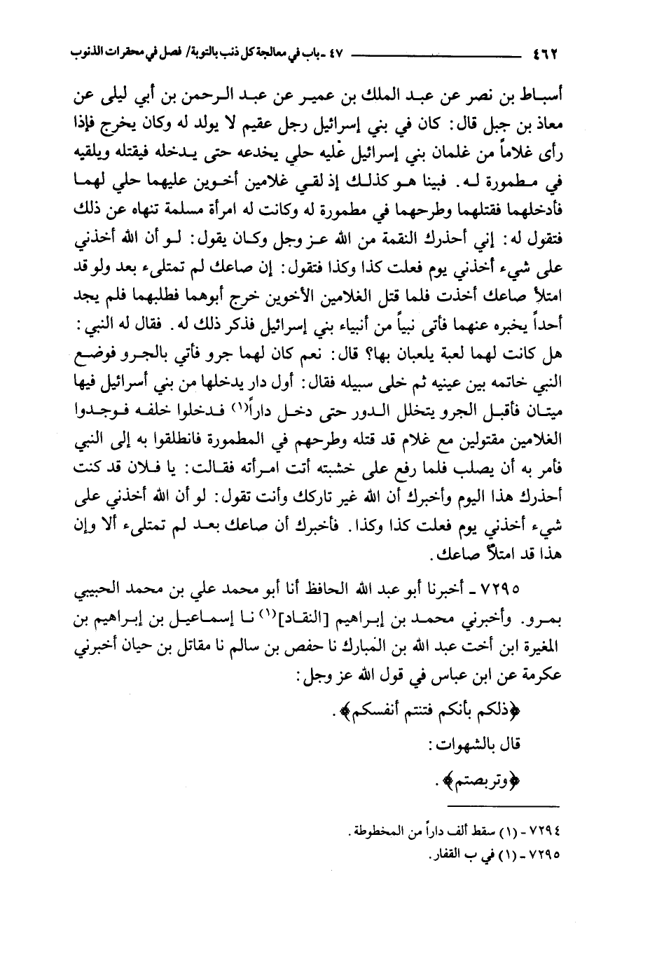 7295 - أخبرنا أبو عبد الله الحافظ أنا أبو محمد علي بن محمد الحبيبي بمرو و أخبرني محمد بن إبراهيم النقاد نا إسماعيل بن إبراهيم بن المغيرة ابن أخت عبد الله بن المبارك نا حفص بن سالم نا مقاتل بن حيان أخبرني عكرمة عن ابن عباس في : قول الله عز و جل :