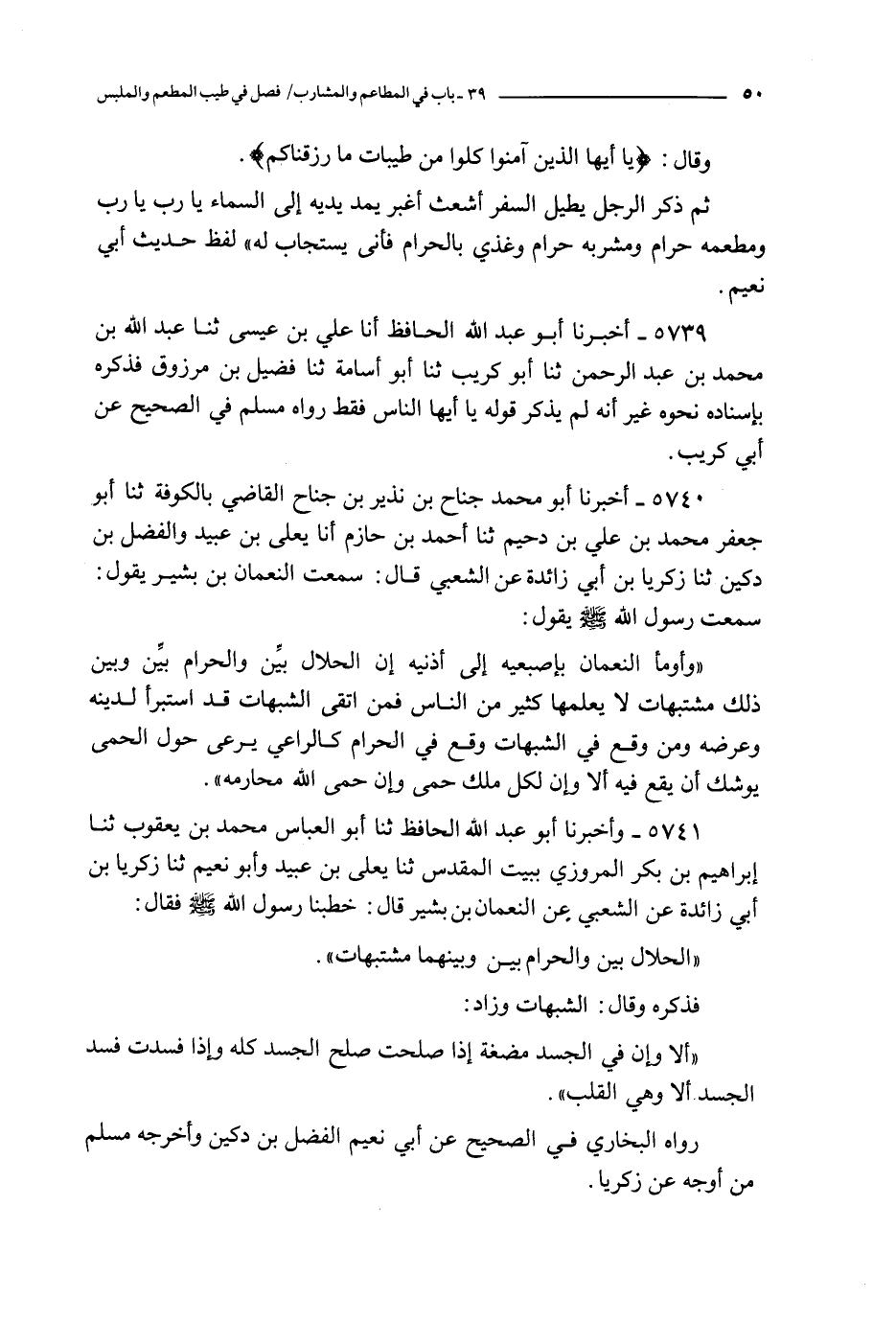 5740 - أخبرنا أبو محمد جناح بن نذير بن جناح القاضي بالكوفة ثنا أبو جعفر محمد بن علي بن دحيم ثنا أحمد بن حازم أنا يعلى بن عبيد و الفضل بن دكين ثنا زكريا بن أبي زائدة عن الشعبي قال : سمعت النعمان بن بشير يقول : سمعت رسول الله صلى الله عليه و سلم يقول :
