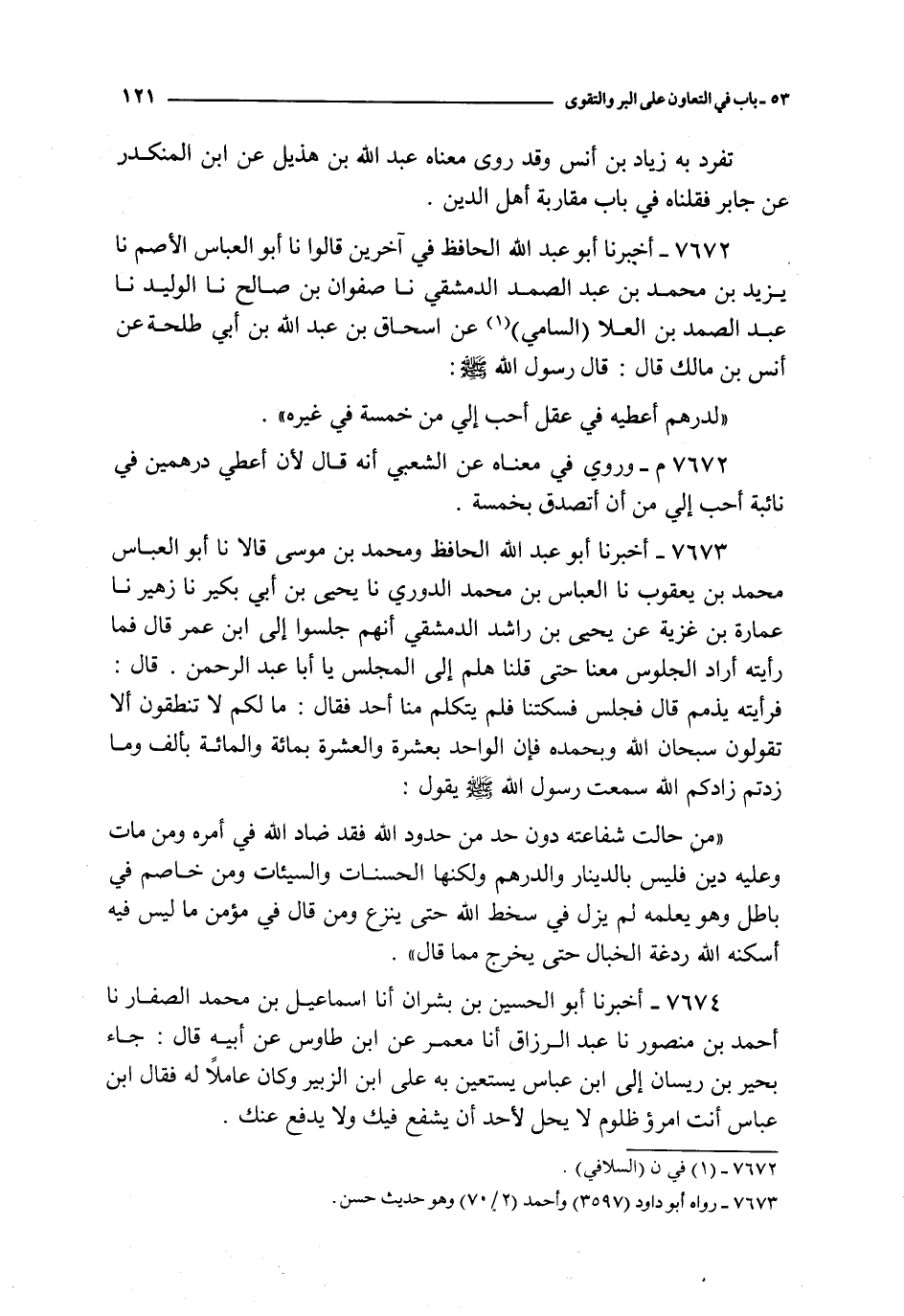 7672 - م ـ و روي في معناه عن الشعبي : أنه قال لأن أعطي درهمين في نائية أحب إلي من أن أتصدق بخمسة