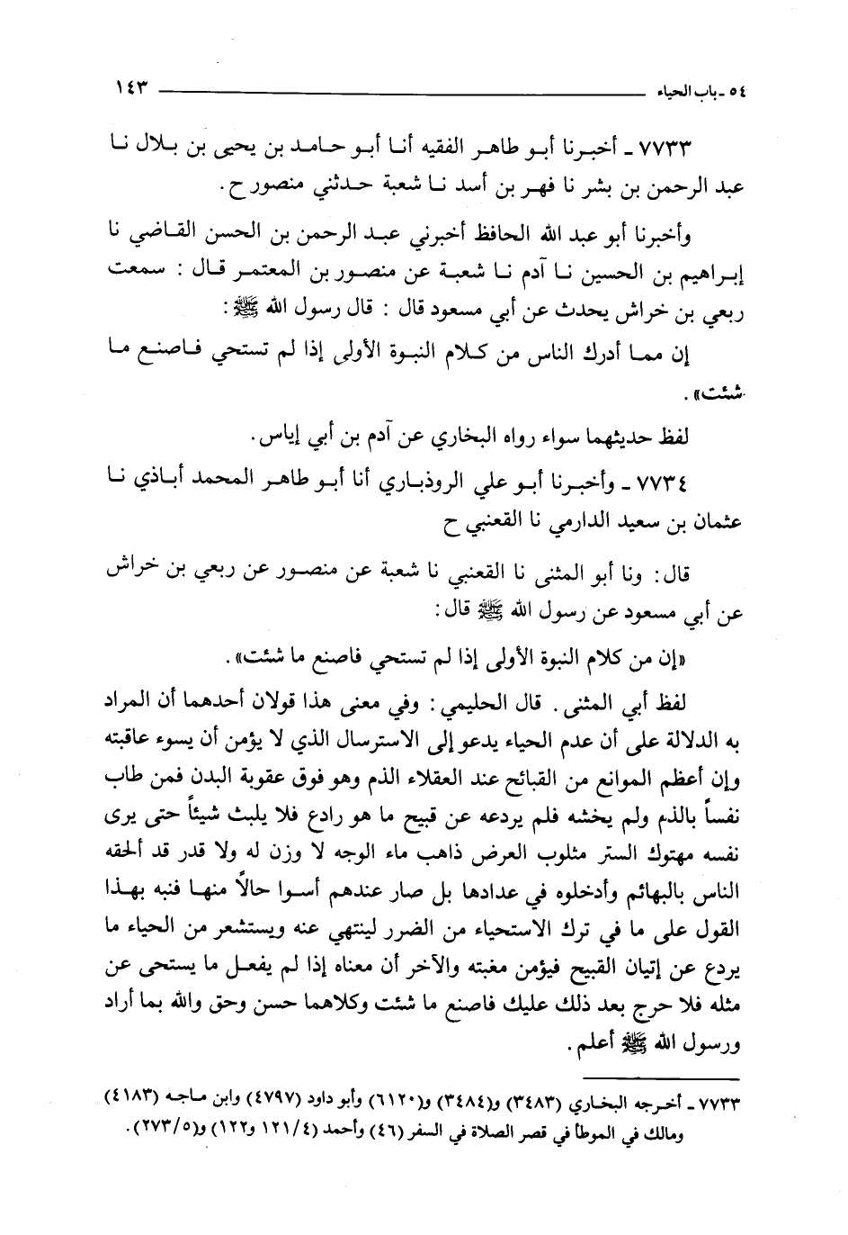 إن مما أدرك الناس من كلام النبوة الأولى إذا لم تستحي فاصنع ما شئت