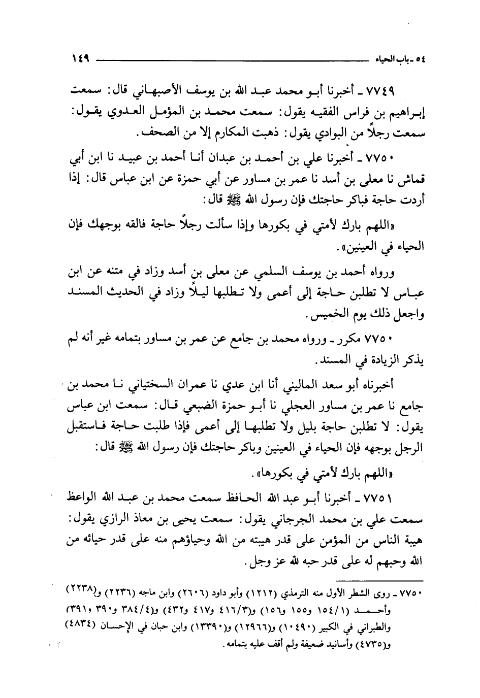 7749 - أخبرنا أبو محمد عبد الله بن يوسف الأصبهاني قال : سمعت إبراهيم بن فراس الفقيه يقول : سمعت محمد بن المؤمل العدوي يقول : سمعت رجلا من البوادي يقول ذهبت المكارم إلى من الصحف
