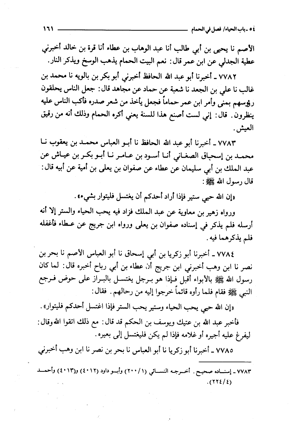 7784 - أخبرنا أبو زكريا بن أبي إسحاق نا أبو العباس الأصم نا بحر بن نصر نا ابن وهب أخبرني ابن جريج أن عطاء بن أبي رباح أخبره قال : لما كان رسول الله صلى الله عليه و سلم بالأبواء أقبل فإذا هو برجل يغتسل بالبراز على حوض فرجع النبي صلى الله عليه و سلم فقام فلما رأوه قائما خرجوا إليه من رحالهم فقال :
