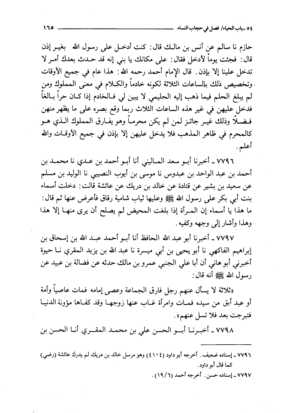 ما هذا يا أسماء إن المرأة إذا بلغت المحيض لم يصلح أن يرى منها إلا هذا و هذا و أشار إلى وجهه و كفيه