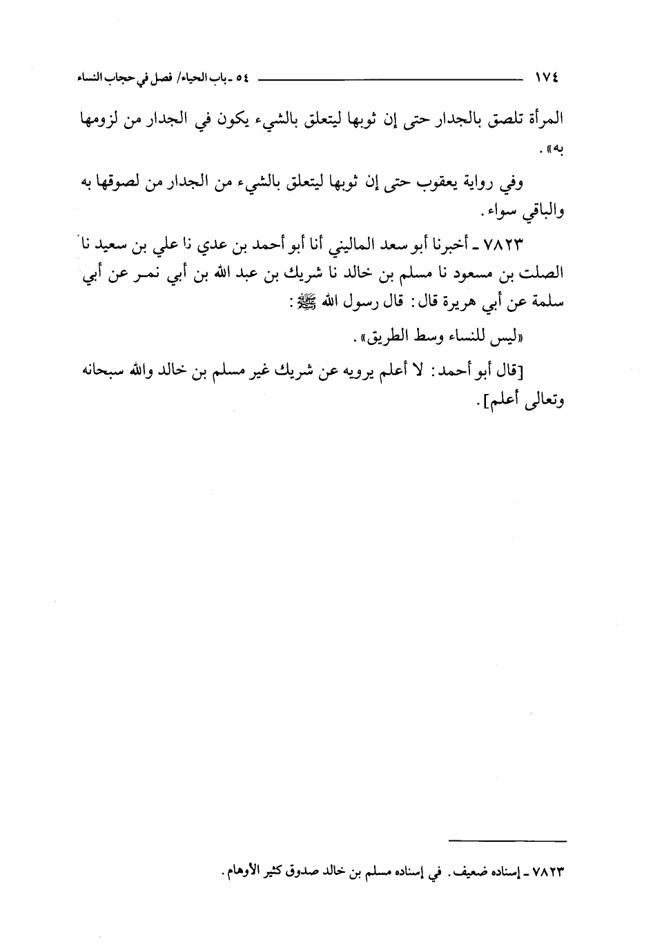 قال أبو أحمد : لا أعلم يرويه عن شريك غير مسلم بن خالد و الله سبحانه و تعالى أعلم