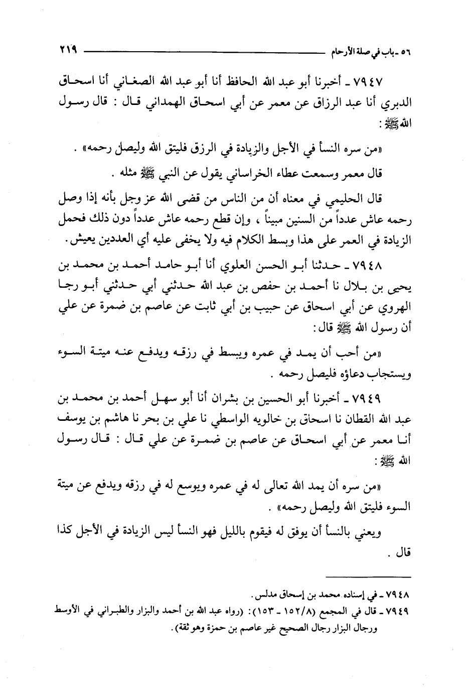 7947 - أخبرنا أبو عبد الله الحافظ أنا أبو عبد الله الصغاني أنا إسحاق الدبري أنا عبد الرزاق عن معمر عن أبي إسحاق الهمداني قال : قال رسول الله صلى الله عليه و سلم :
