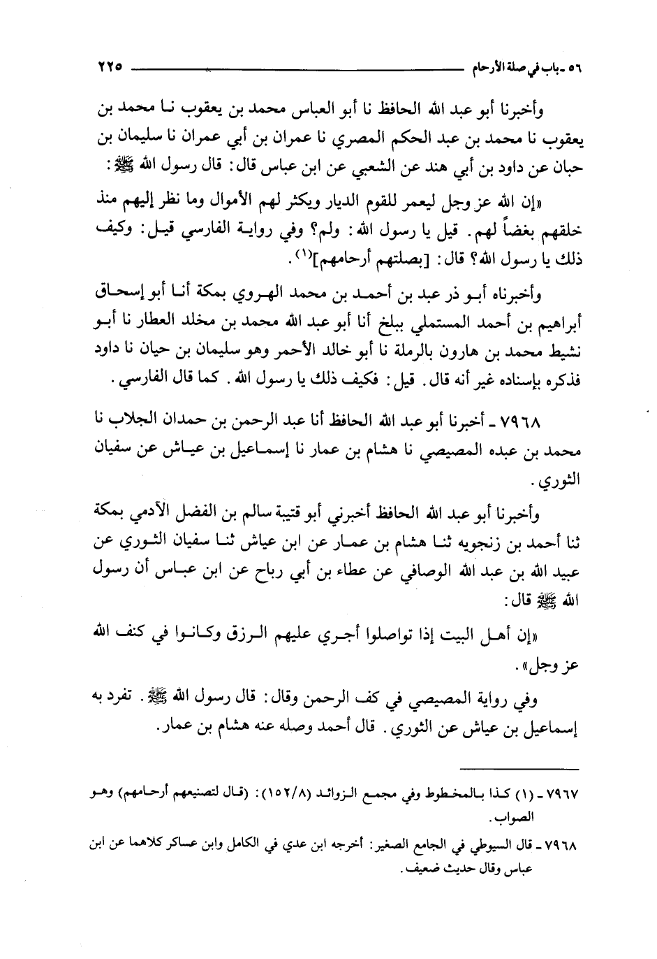 7968 - أخبرنا أبو عبد الله الحافظ أنا عبد الرحمن بن حمدان الجلاب نا محمد بن عبده المصيصي نا هشام بن عمار نا إسماعيل بن عياش عن سفيان الثوري