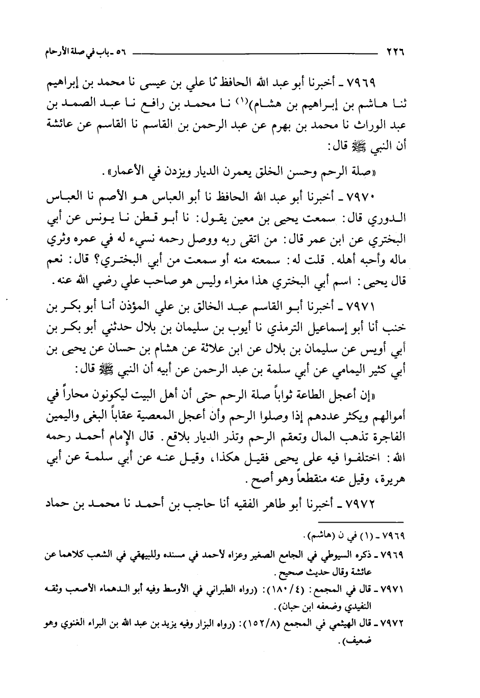 7970 - أخبرنا أبو عبد الله الحافظ نا أبو العباس هو الأصم نا العباس الدوري قال : سمعت يحيى بن معين يقول : نا أبو قطن نا يونس عن أبي البختري عن ابن عمر قال : من اتقى و وصل رحمه نسيء له في عمره و ثري ماله و أحبه أهله قلت له : سمعته منه أو سمعت من أبي البختري ؟ قال : نعم قال يحيى : اسم أبي البختري هذا مغراء و ليس هو صاحب علي رضي الله عنه