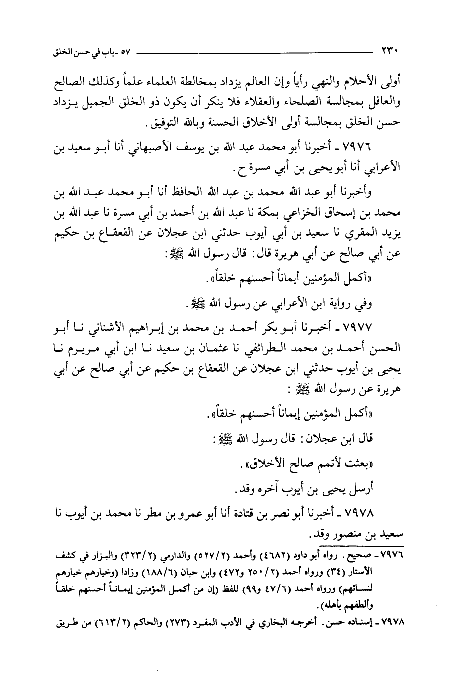 أكمل المؤمنين أيمانا أحسنهم خلقا