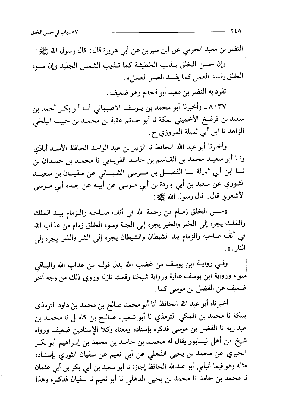 8037 - و أخبرنا أبو محمد بن يوسف الأصبهاني أنا أبو بكر أحمد بن سعيد بن فرضخ الأخنسي بمكة نا أبو حاتم عقبة بن محمد بن حبيب البلخي الزاهد نا ابن أبي ثميلة المروزي ح