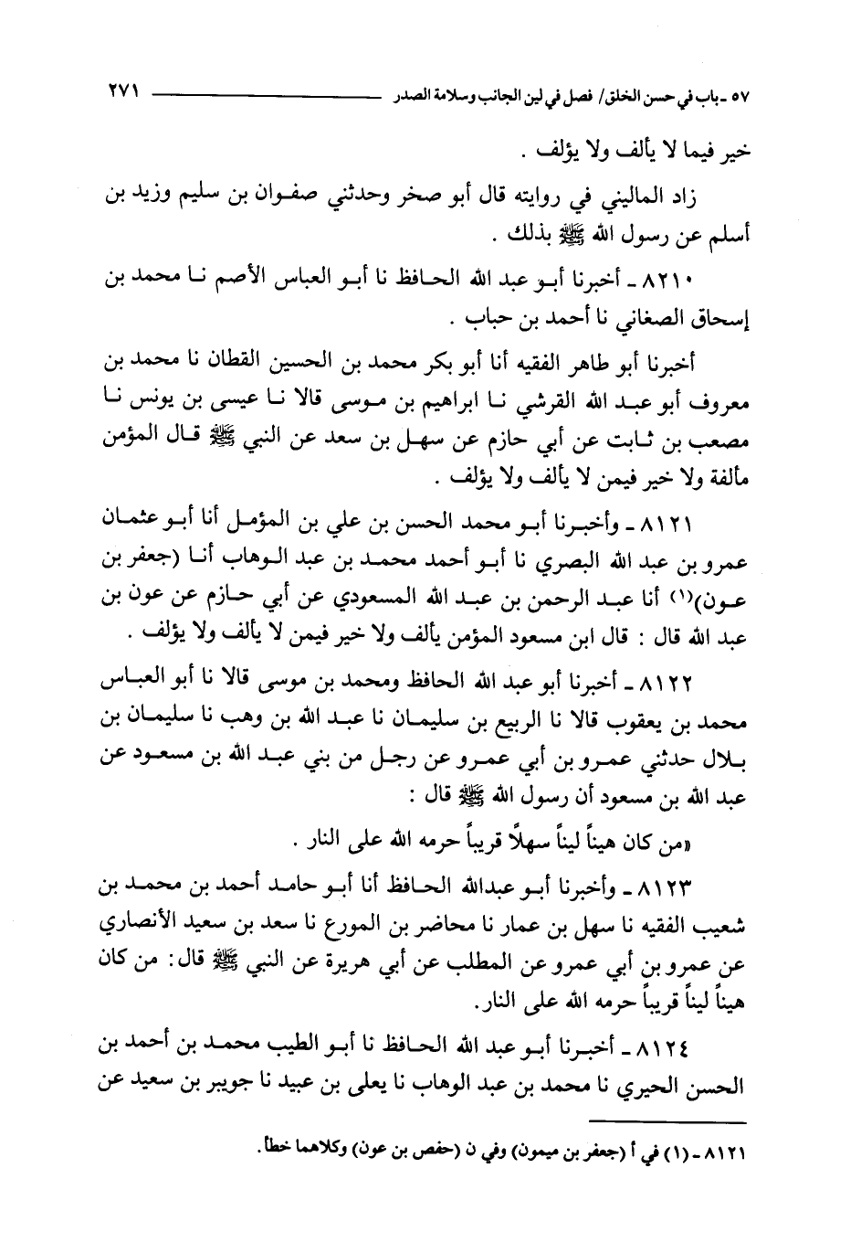 8120 - أخبرنا أبو عبد الله الحافظ نا أبو العباس الأصم نا محمد بن إسحاق الصغاني نا أحمد بن حباب