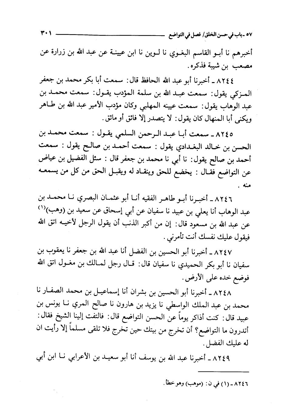 8245 - سمعت أبا عبد الرحمن السلمي يقول : سمعت محمد بن الحسن بن خالد البغدادي يقول : سمعت أحمد بن صالح يقول : نا أبي نا محمد بن جعفر قال : سئل الفضيل بن عياض عن التواضع فقال : يخضع للحق و ينقاد له و يقبل الحق منكل من يسمعه منه