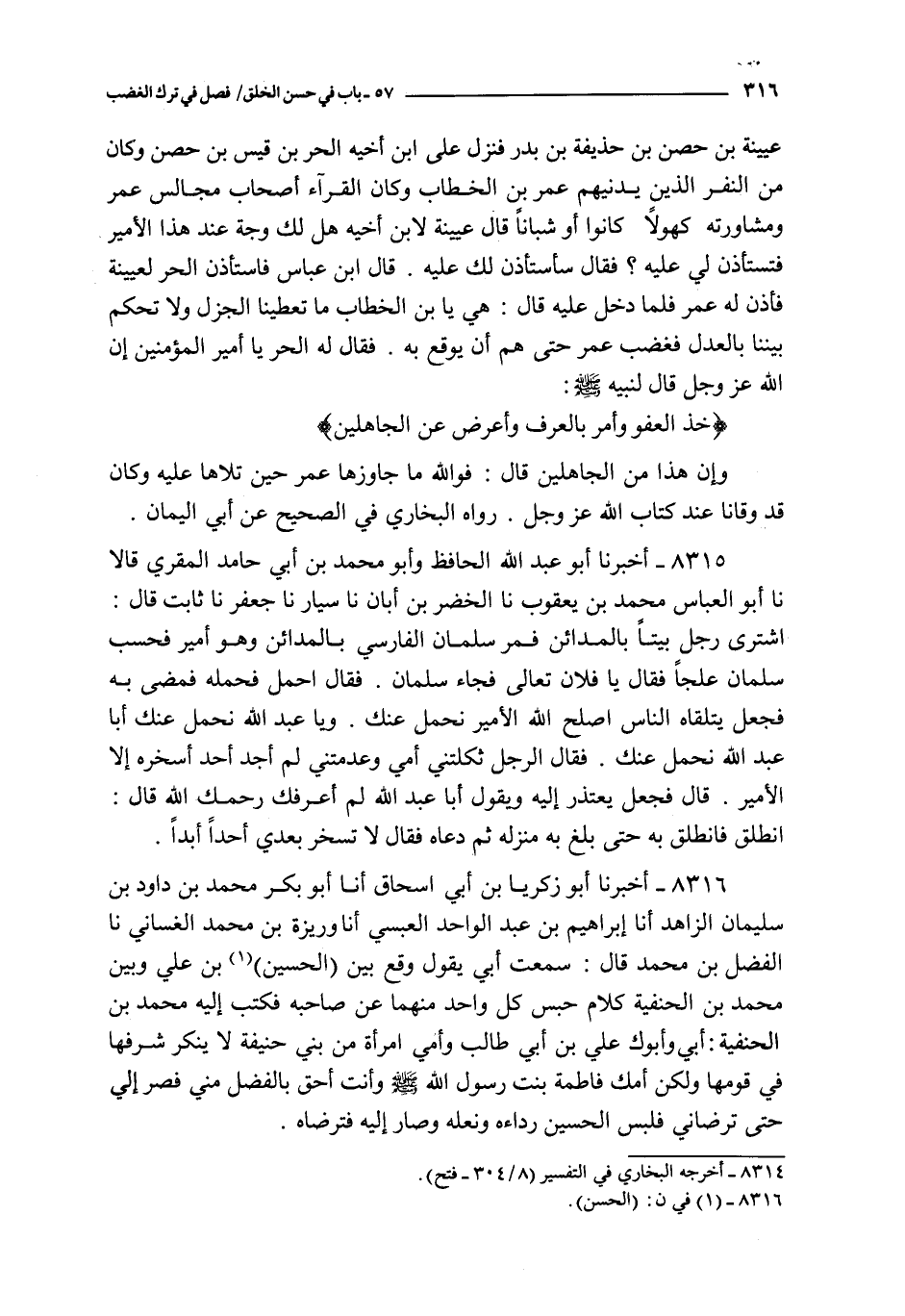 8315 - اخبرنا أبو عبد الله الحافظ و أبو محمد بن أبي حامد المقري قالا نا أبو العباس محمد بن يعقوب نا الخضر بن أبان نا سيار نا جعفر بن ثابت قال : اشترى رجل بيتا بالمدائن فمر سلمان الفارسي بالمدائن و هو أمير فحسب سلمان علجا فقال يا فلان تعالى فجاء سلمان فقال احمل فحمله فمضى به فجعل يتلقاه الناس اصلح الله الأمير نحمل عنك و يا عبد الله نحمل عنك أبا عبد الله نحمل عنك فقال الرجل ثكلتني أمي و عدمتني لم أجد أحد أسخره إلا الأمير قال فجعل يعتذر إليه و يقال أبا عبد الله لم أعرفك رحمك الله قال : انطلق فانطلق به حتى بلغ به منزله ثم دعاه فقال لا تسخر بعدي أحدا أبدا