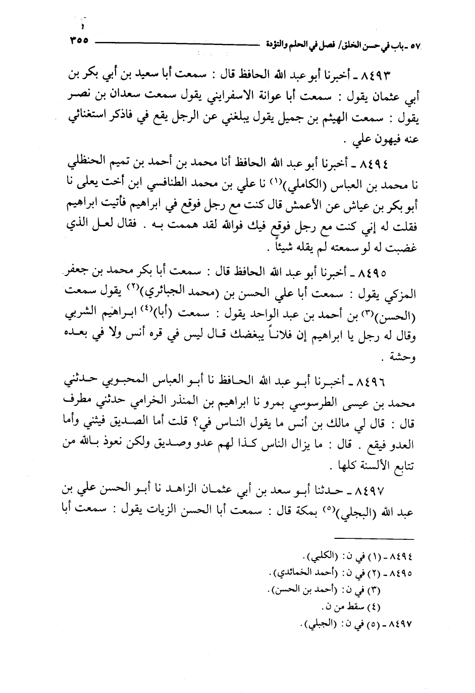 8493 - أخبرنا أبو عبد الله الحافظ قال : سمعت أبا سعيد بن أبي بكر بن أبي عثمان يقول : سمعت أبا عوانة الاسفرايني يقول : سمعت سعدان بن نصر يقول : سمعت الهيثم بن جميل يقول : يبلغني عن الرجل يقع في فأذكر استغنائي عنه فيهون علي