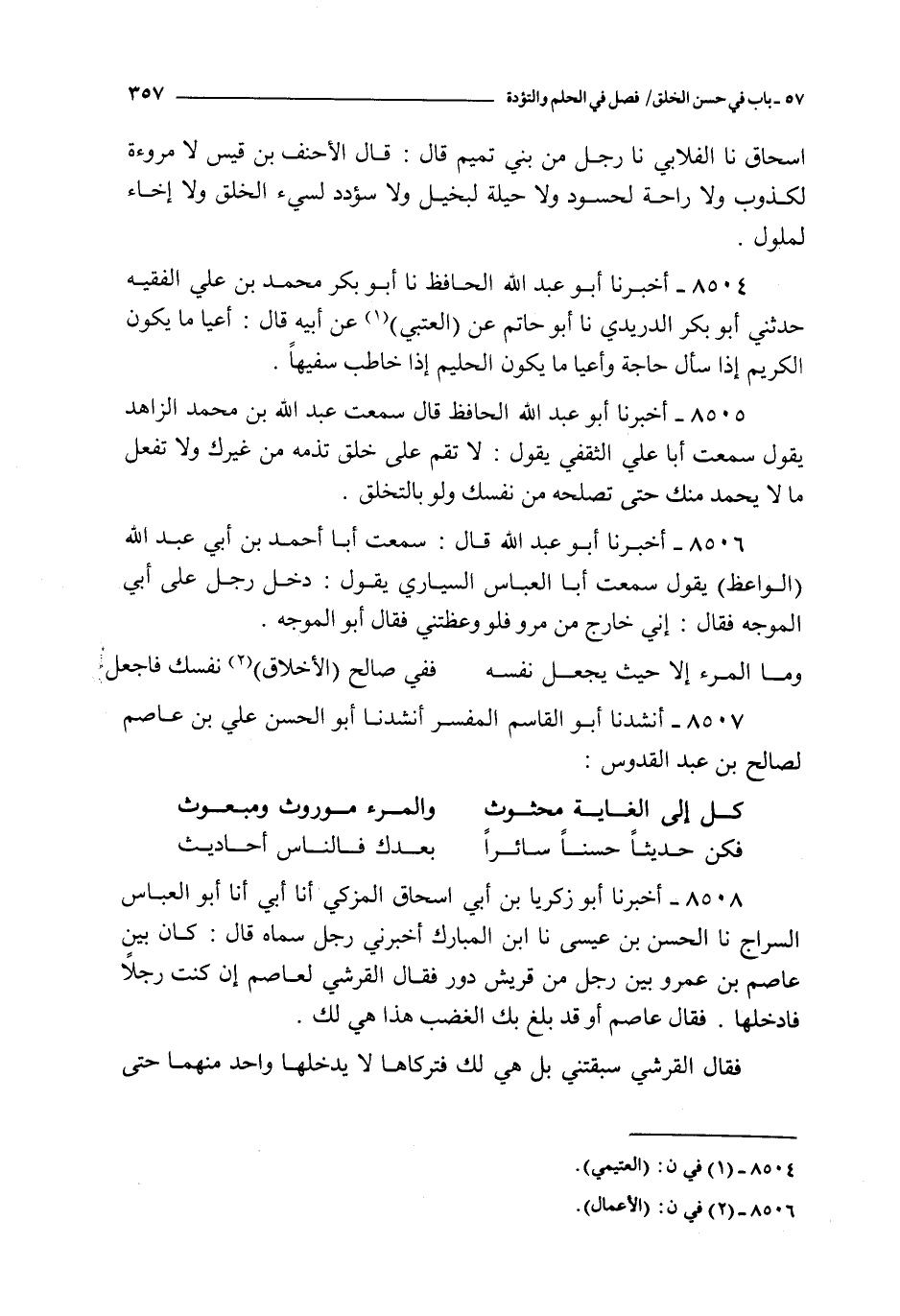 8507 - أنشدنا أبو القاسم المفسر أنشدنا أبو الحسن علي بن عاصم لصالح بن عبد القدوس : ـ ( كل إلى الغاية محثوث والمرء موروث ومبعوث )