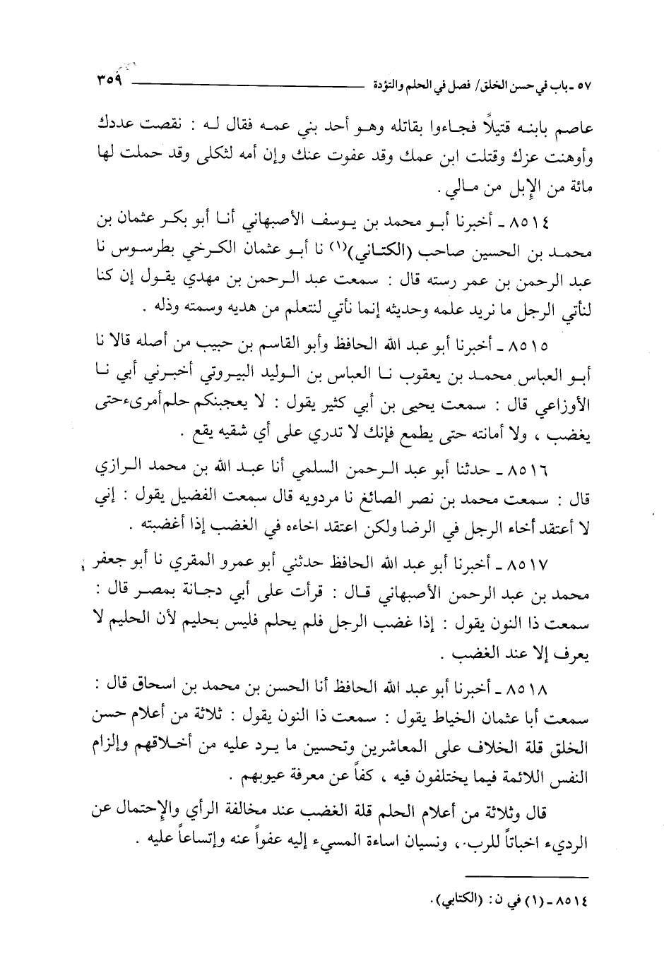 8514 - أخبرنا أبو محمد بن يوسف الأصبهاني أنا أبو بكر عثمان بن محمد بن الحسين صاحب الكتاني نا أبو عثمان الكرخي بطرسوس نا عبد الرحمن بن عمر رسته قال : سمعت عبد الرحمن بن مهدي يقول : إن كنا لنأتي الرجل ما نريد علمه وحديثه إنما نأتي لنتعلم من هديه و سمته و ذله