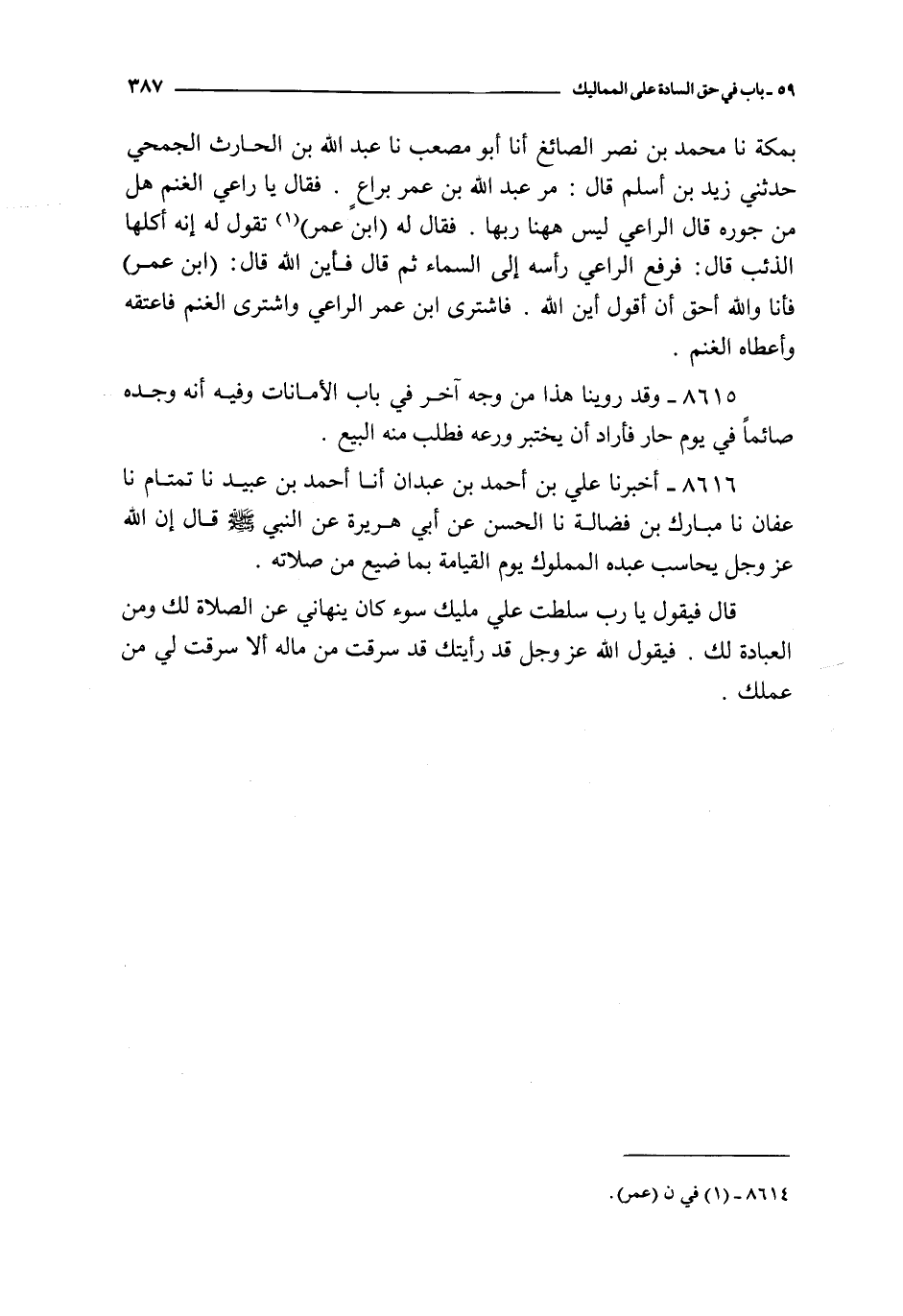 8615 - و قد روينا هذا من وجه آخر في باب الأمانات : و فيه أنه وجده صائما في يوم حار فأراد أن يختبر ورعه فطلب منه البيع