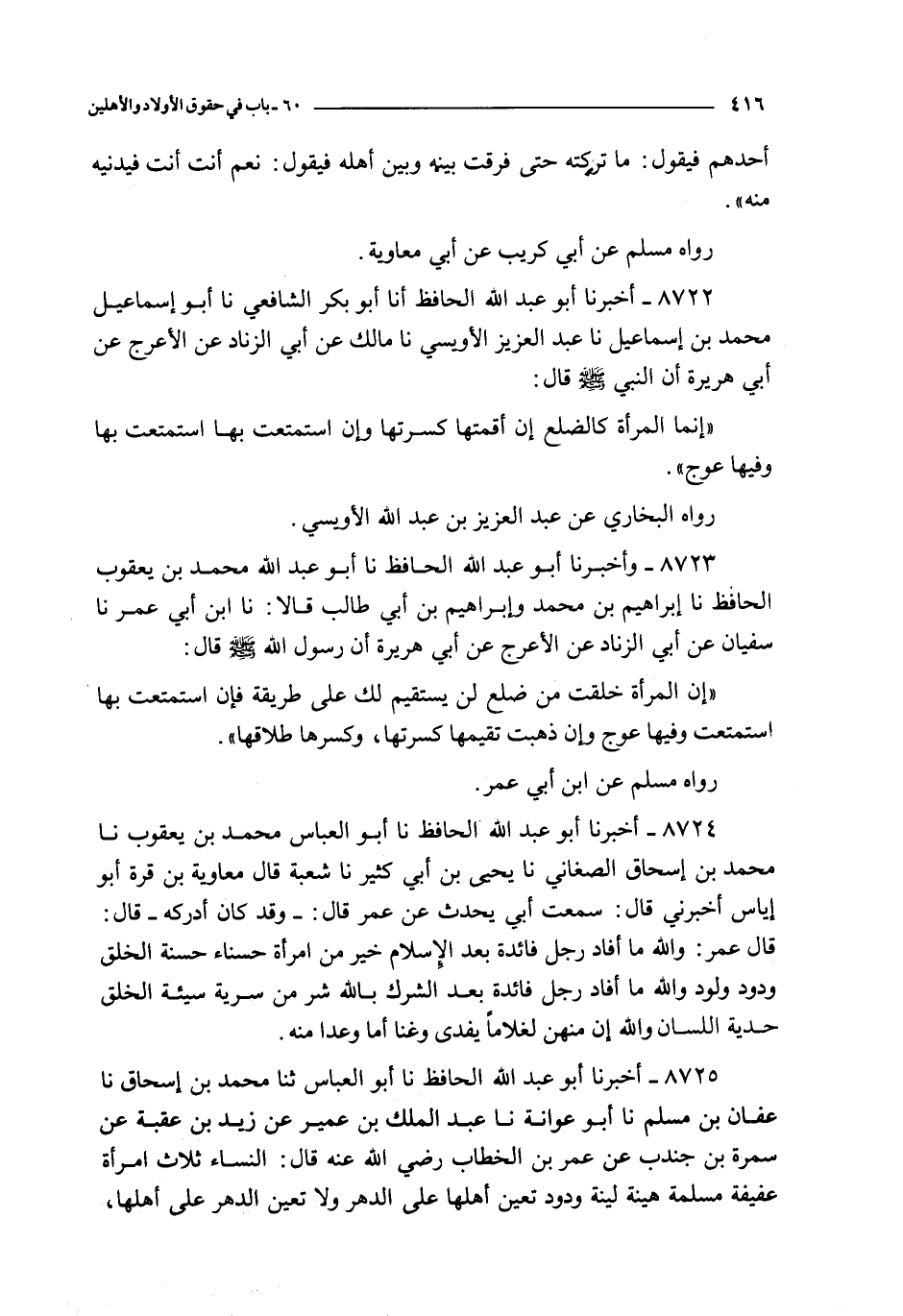 8723 - و أخبرنا أبو عبد الله الحافظ نا أبو عبد الله محمد بن يعقوب الحافظ نا إبراهيم بن محمد و إبراهيم بن أبي طالب قالا : نا ابن أبي عمر نا سفيان عن أبي الزناد عن الأعرج عن أبي هريرة : أن رسول الله صلى الله عليه و سلم قال :