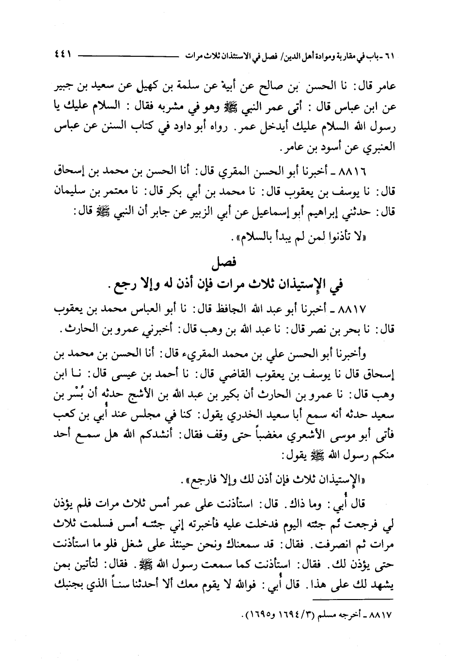 الإستيذان ثلاث فإن أذن لك و إلا فارجع