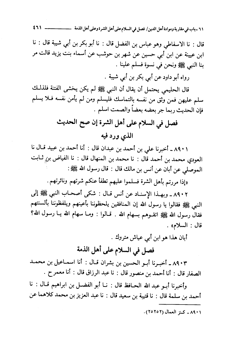 فصل في السلام على أهل الشرة إن صح الحديث الذي ورد فيه