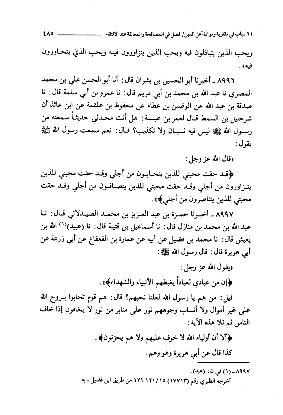 ( قد حقت محبتي للذين يتحابون من أجلي و قد حقت محبتي للذين يتزاورون من أجلي و قد حقت محبتي للذين يتصافون من أجلي و قد حقت محبتي للذين يتناصرون من أجلي )