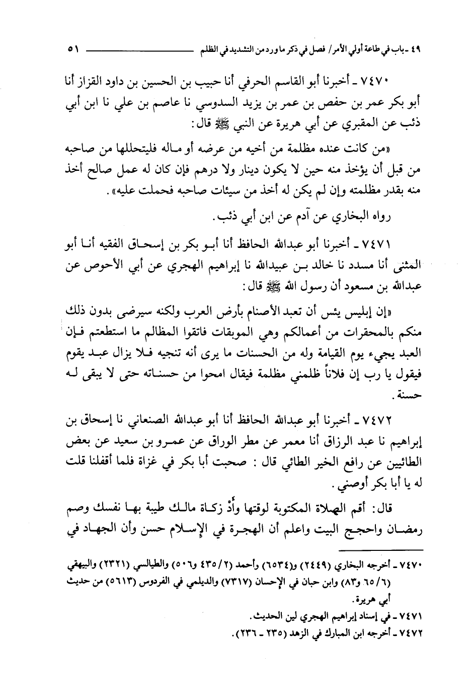 7471 - أخبرنا أبو عبد الله الحافظ أنا أبو بكر بن إسحاق الفقيه أنا أبو المثنى أنا مسدد نا خالد بن عبيد الله نا إبراهيم الهجري عن أبي الأحوص عن عبد الله بن مسعود : أن رسول الله صلى الله عليه و سلم قال :