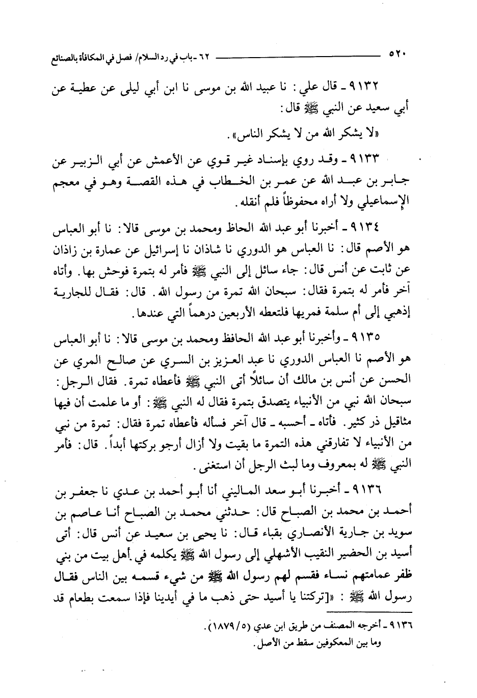 9133 - و قد روي بإسناد غير قوي عن الأعمش عن أبي الزبير عن جابر بن عبد الله عن عمر بن الخطاب : في هذه القصة و هو في معجم الإسماعيلي و لا أراه محفوظا فلم أنقله