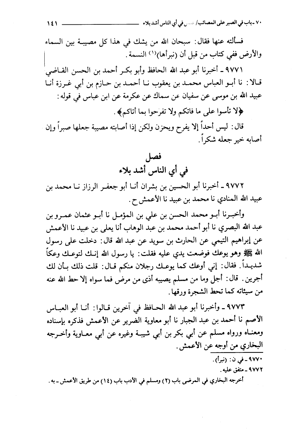 فصل ـ في أي الناس أشد بلاء