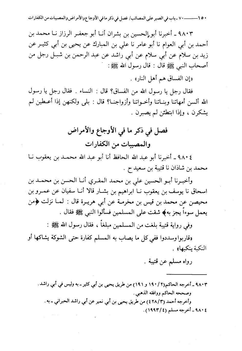 فصل في ذكر ما في الأوجاع و الأمراض و المصيبات من الكفارات