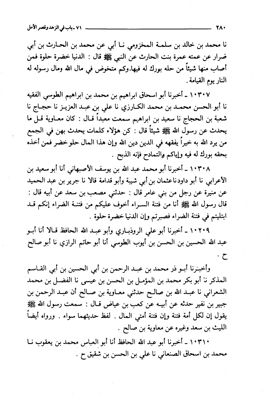 10310 - أخبرنا أبو عبد الله الحافظ أنا أبو العباس محمد بن يعقوب نا محمد بن إسحاق الصنعاني نا علي بن الحسن بن شقيق ح