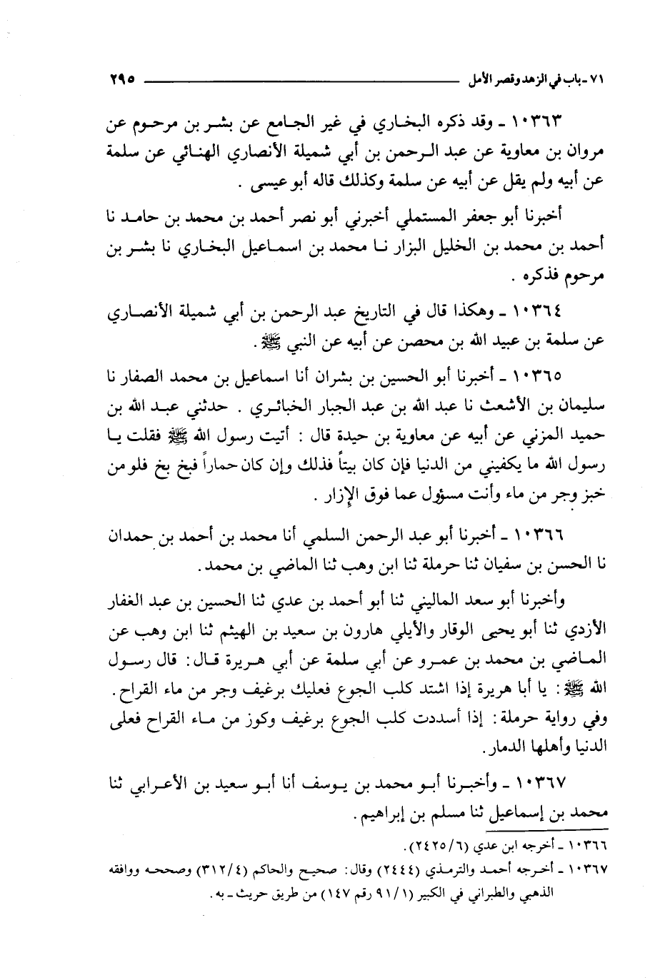 10366 - أخبرنا أبو عبد الرحمن السلمي أنا محمد بن أحمد بن حمدان نا الحسن بن سفيان نا حرملة نا ابن وهب نا الماضي بن محمد