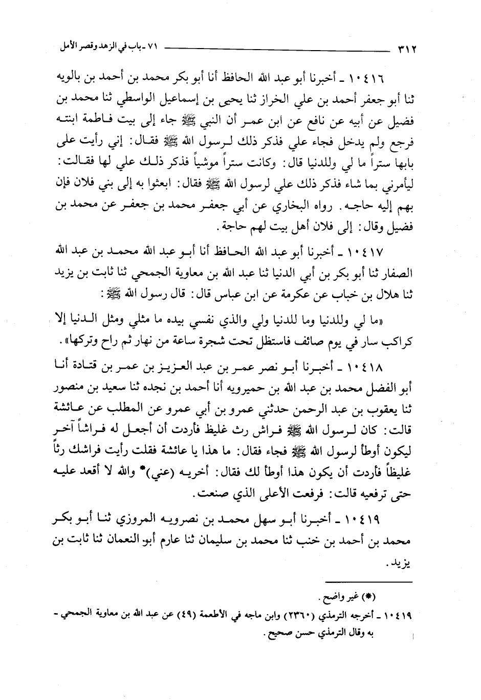 10419 - أخبرنا أبو سهل محمد بن نصرويه المروزي ثنا أبو بكر محمد بن أحمد بن خنب ثنا محمد بن سليمان ثنا عارم أبو النعمان ثنا ثابت بن يزيد