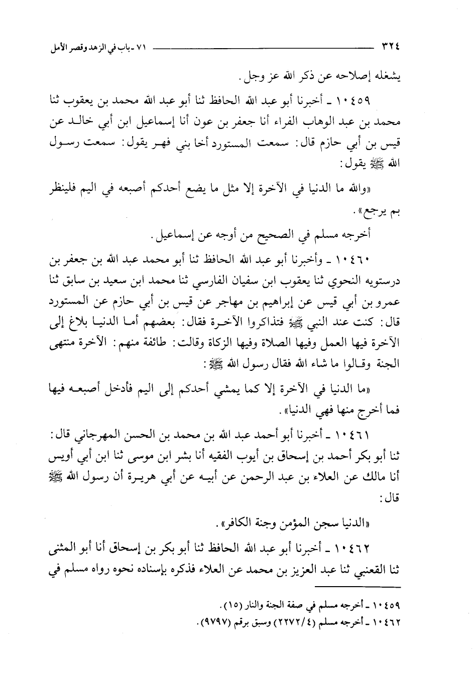 10462 - أخبرنا أبو عبد الله الحافظ ثنا أبو بكر بن إسحاق انا أبو المثنى ثنا القعنبي ثنا عبد العزيز بن محمد عن العلاء : فذكره بإسناده نحوه رواه مسلم في الصحيح عن قتيبة عن عبد العزيز