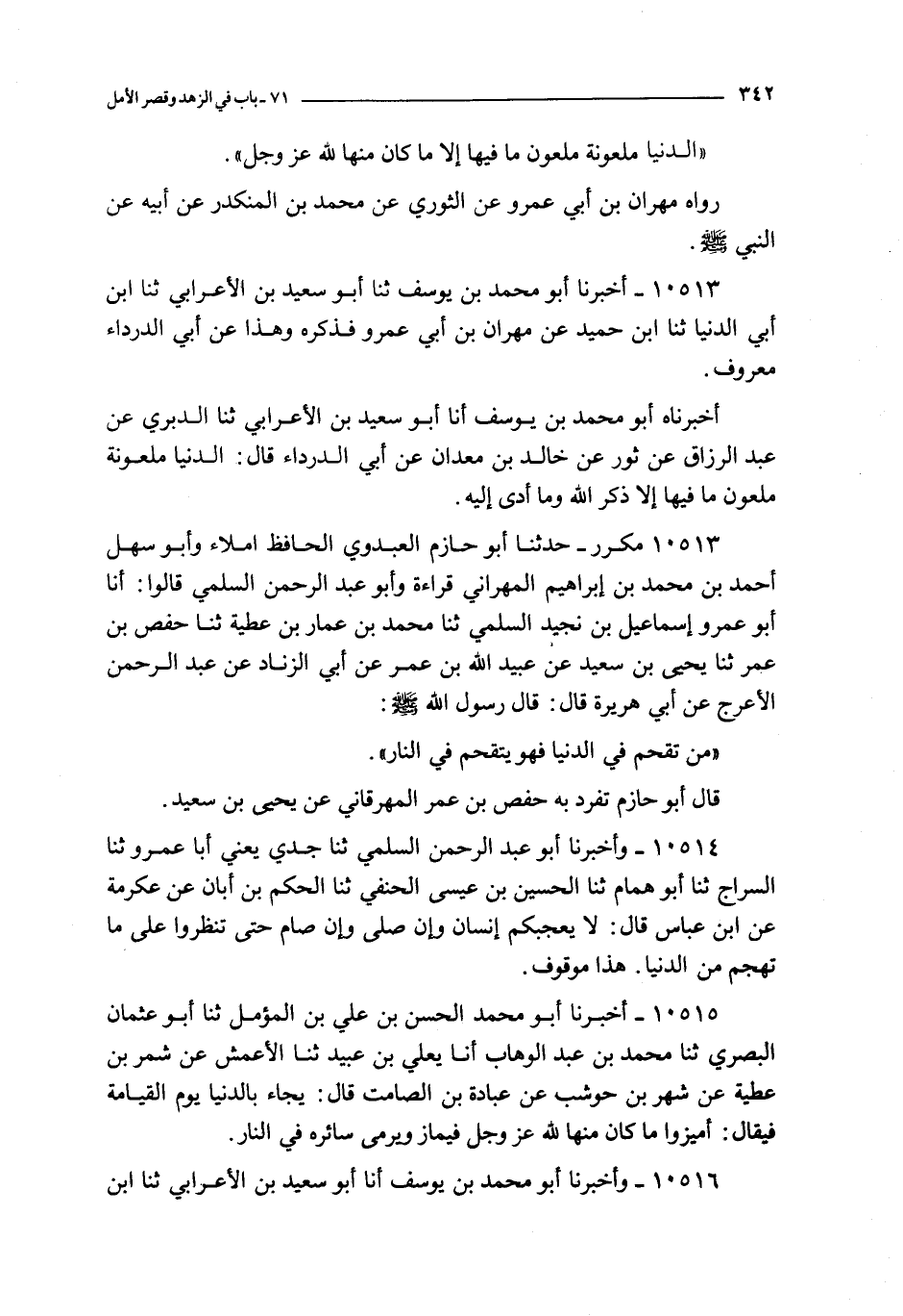 10516 - و أخبرنا أبو محمد بن يوسف انا أبو سعيد بن الأعرابي ثنا ابن أبي الدنيا ثنا عباس بن يزيد البصري ثنا أبو معاوية عن الأعمش : فذكره و قال : أراه رفعه و قال : و ألقوا سائرها في النار