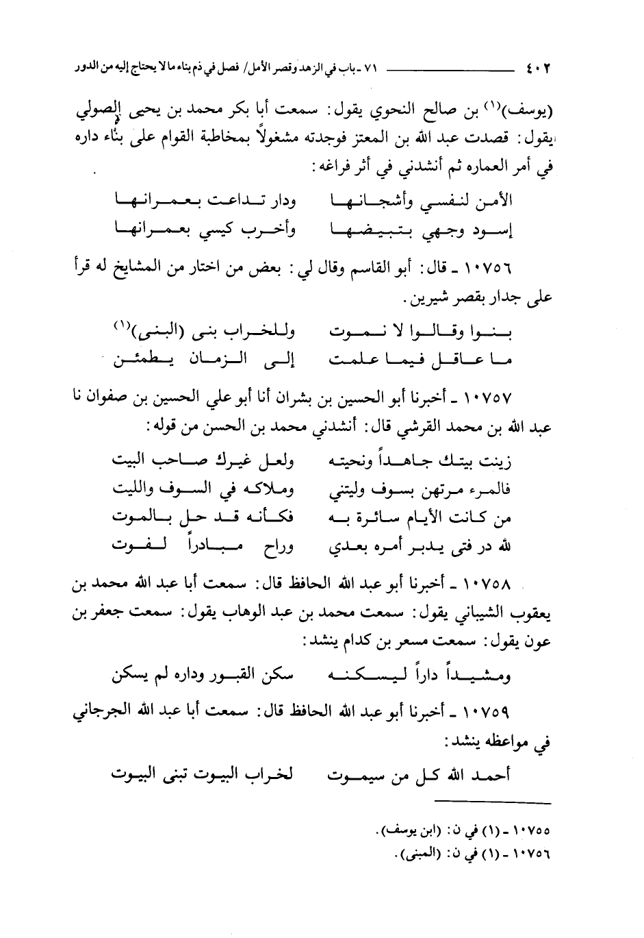 10756 - قال أبو القاسم و قال لي : بعض من اختار من المشايخ له قرأ على جدار بقصر شيرين