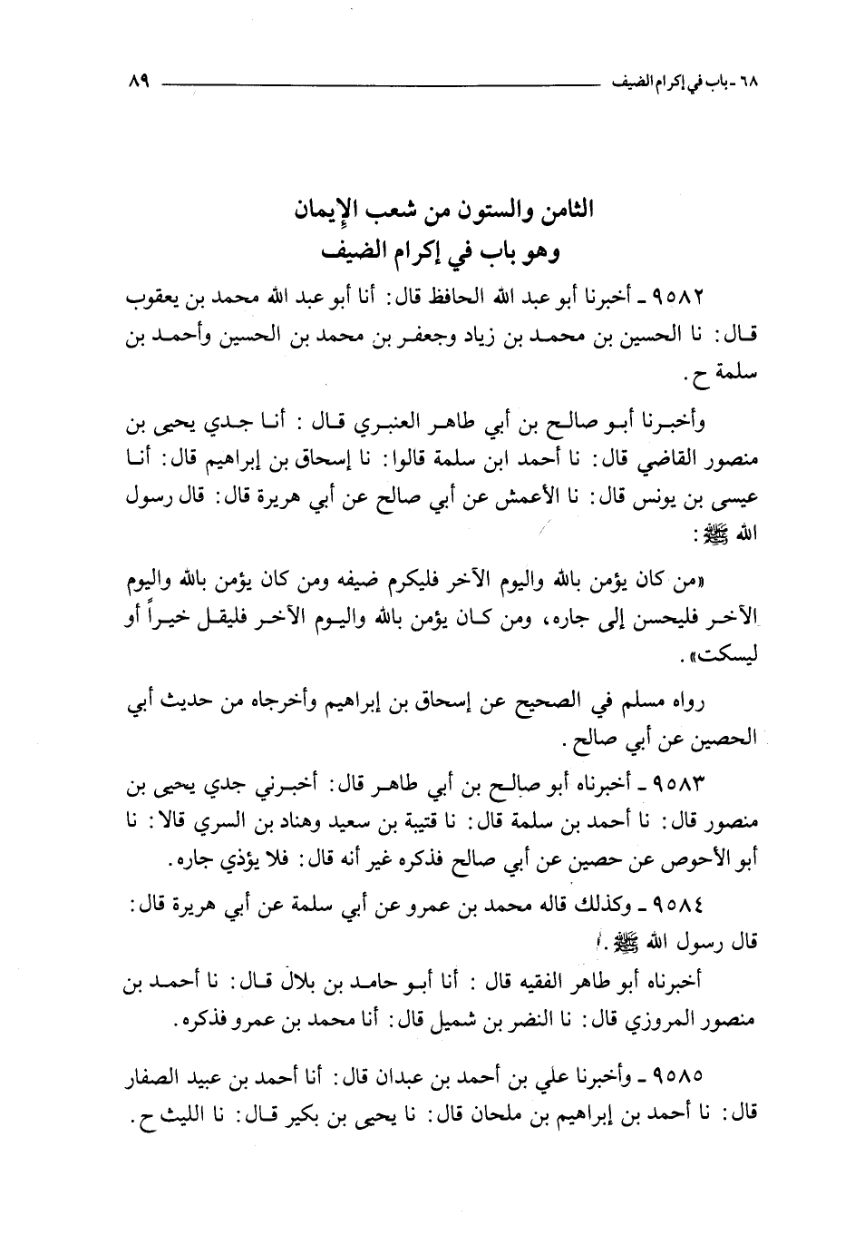 الثامن و الستون من شعب الإيمان و هو باب في إكرام الضيف