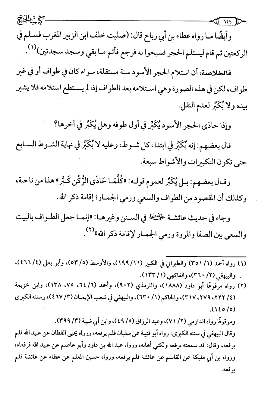 وقال بعضهم: بل يُكَبِّر لعموم قوله: «كُلَّمَا حَاذَى الرُّكْن كَبَّر» هذا من ناحية، وكذلك أن المقصود من الطواف والسعي ورمي الجمار؛ إقامة ذكر الله.