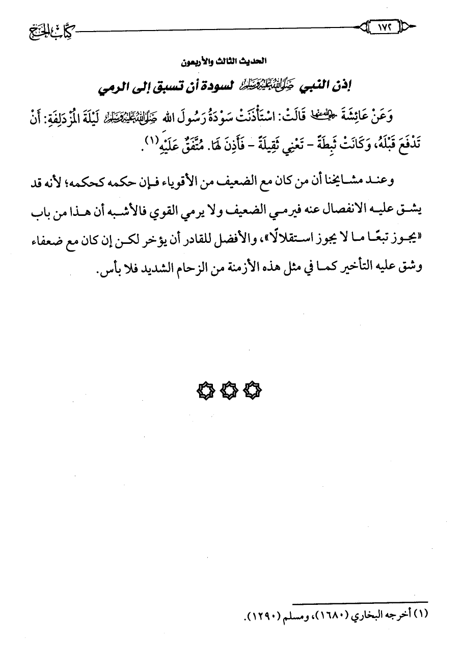 إذن النبي - صلى الله عليه وسلم - للسودة أن تسبق إلى الرمي
