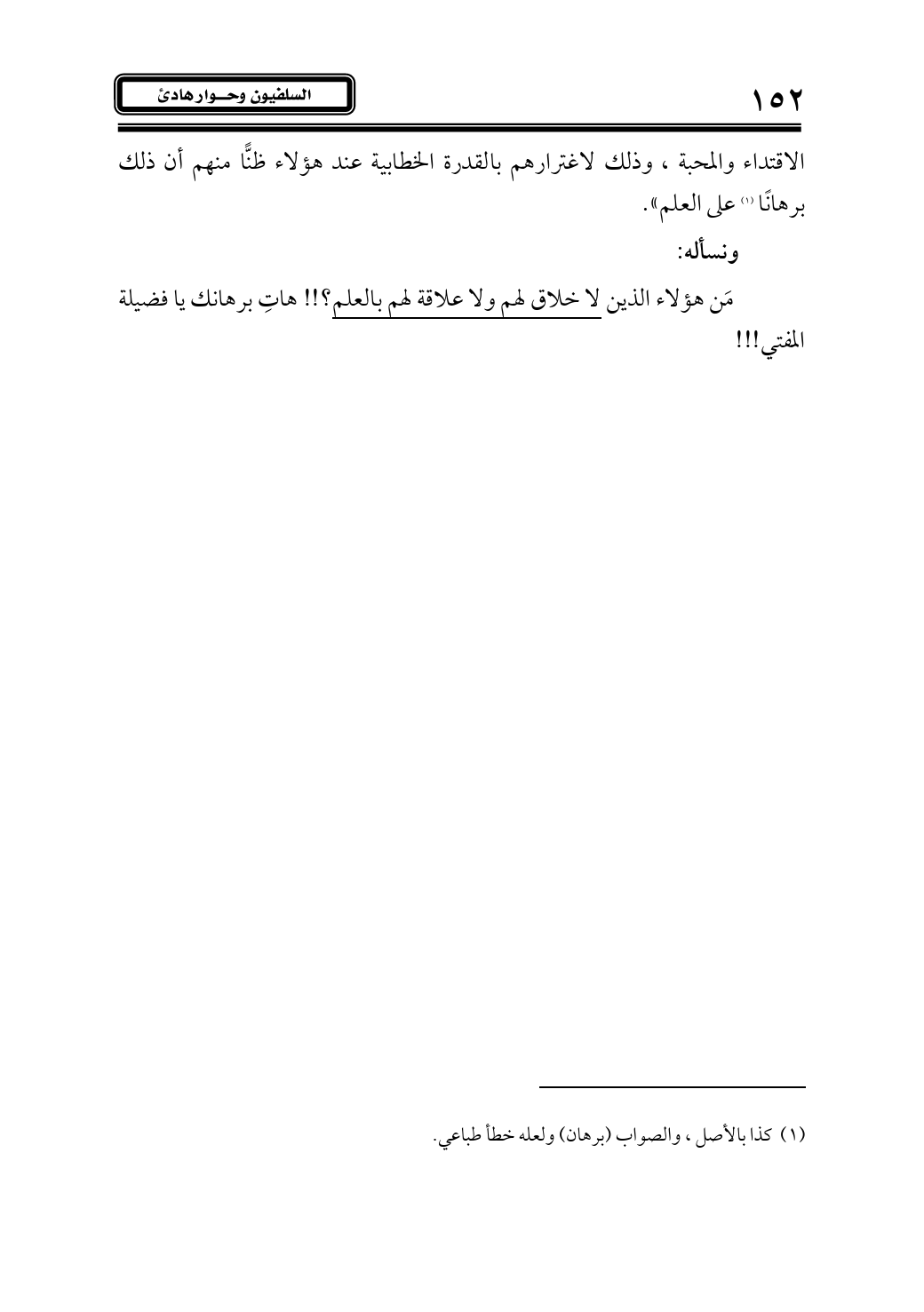 الاقتداء والمحبة، وذلك لاغترارهم بالقدرة الخطابية عند هؤلاء ظنًّا منهم أن ذلك برهانًا (¬1) على العلم».