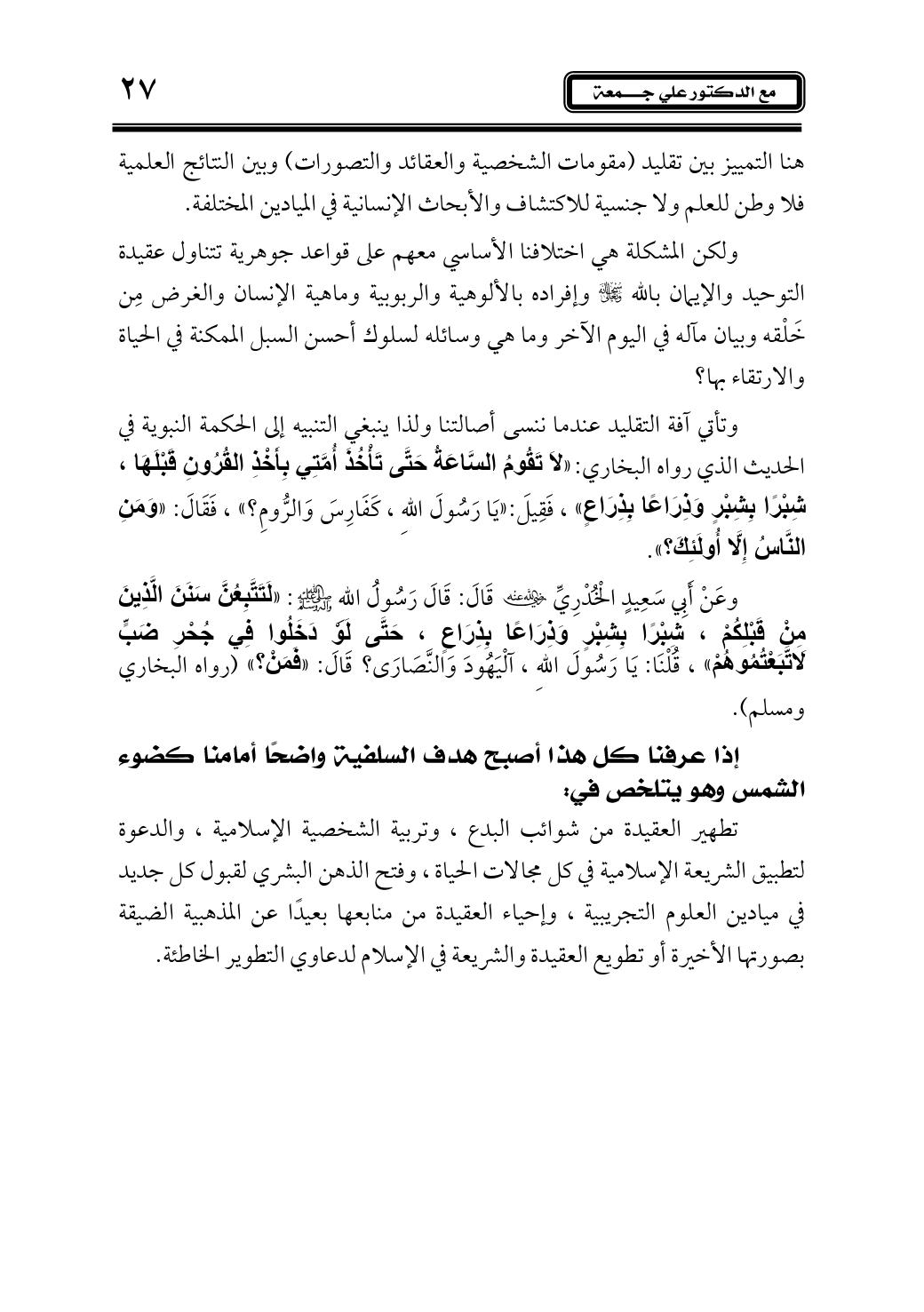 إذا عرفنا كل هذا أصبح هدف السلفية واضحًا أمامنا كضوء الشمس وهو يتلخص في: