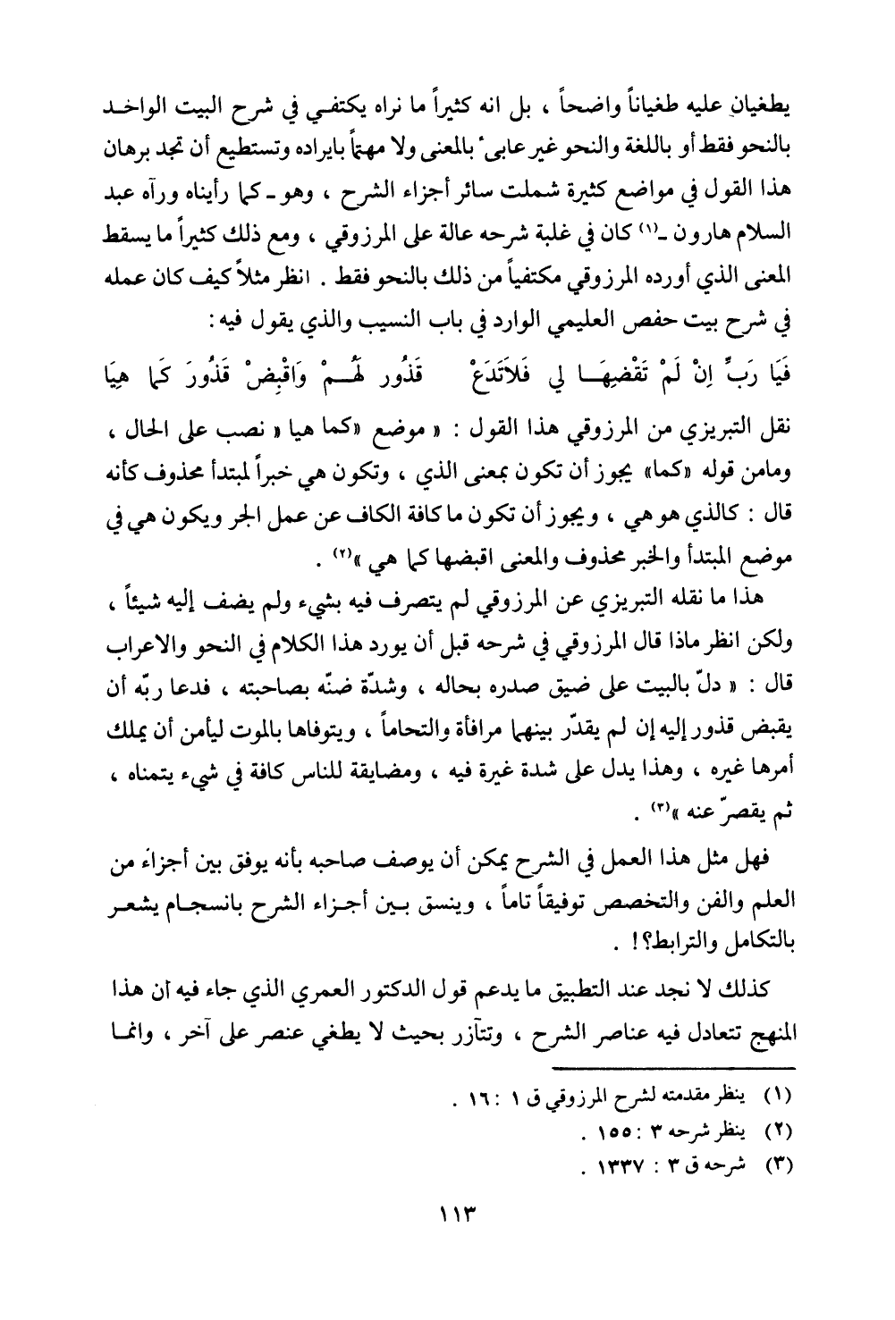 فهل مثل هذا العمل في الشرح يمكن أن يوصف صاحبه بأنه يوفق بين أجزاء من العلم والفن والتخصص توفيقًا تامًا، وينسق بين أجزاء الشرح بانسجام يشعر بالتكامل والترابط؟ !