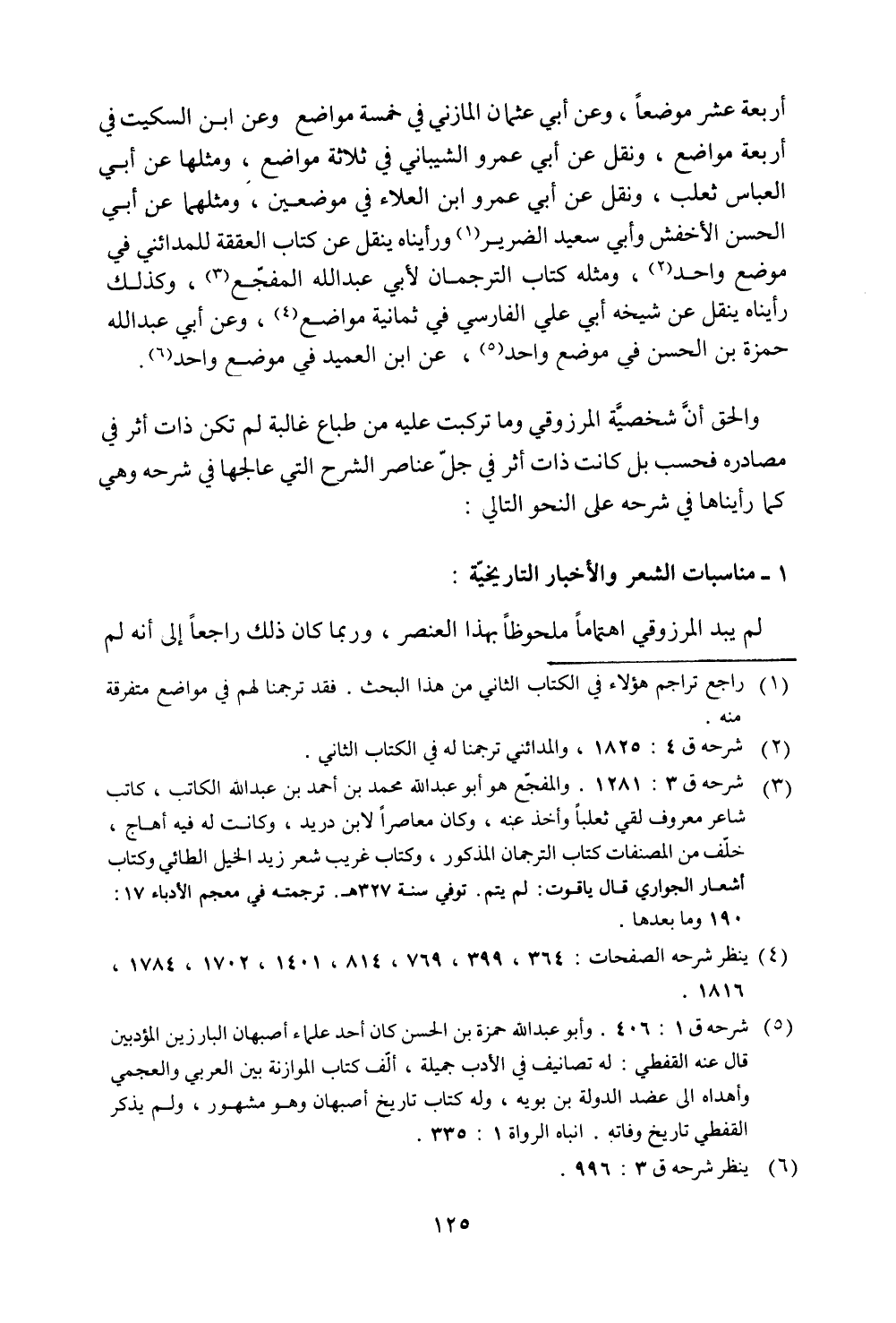 أربعة عشر موضعا، وعن ابن عثمان المازني في خمسة مواقع وعن ابن السكيت في أربعة مواضع، ونقل عن أبي عمرو الشيباني في ثلاثة مواضع، ومثلها عن أبي العباس ثعلب، ونقل عن أبي عمرو ابن العلاء في موضعين، ومثلهما عن أبي الحسن الأخفش وأبي سعيد الضرير ورأيناه ينقل عن كتاب العققة للمدائني في موضع واحد، ومثله كتاب الترجمان لأبي عبد الله المفجع، وكذلك رأيناه ينقل عن شيخه أبي على الفارس في ثمانية مواضع، وعن أبي عبد الله حمزة بن الحسن في موضع واحد، عن ابن العميد في موضع واحد.